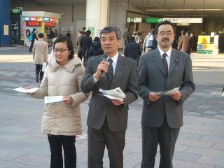 赤羽駅東口で、池内12区候補、そね前都議と宣伝