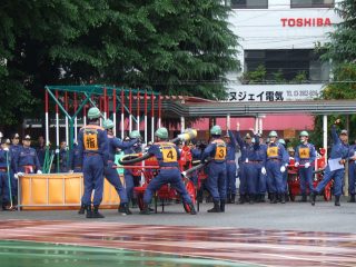 赤羽小学校の校庭で開かれた赤羽消防団の消防操法大会を見学しました。 消防操法大会とは、日頃から訓練をおこなっている消防団のみなさんが、その消火スキルを分団ごとのチームに分かれて競う競技会です。 赤羽で …