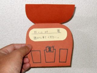 先日、岩淵児童館から、子どもの手によるかわいい招待状が届きました。 開けてみると「わいわい縁日」のご案内でした。 「ポップコーン、クジ屋、ソースせんべい、かき氷、的あて、宝くじがあるよ!」とのことで、 …