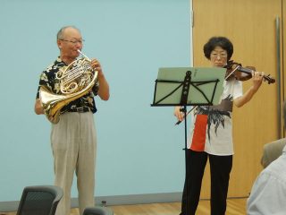 北区革新懇が主催する毎年恒例の「政治革新を語る納涼のつどい」が、北とぴあスカイホールで開かれました。 開会のあいさつに続き、まずはヴァイオリンの河野啓子さん、ホルンの河野肇さんによるミニコンサート。 …