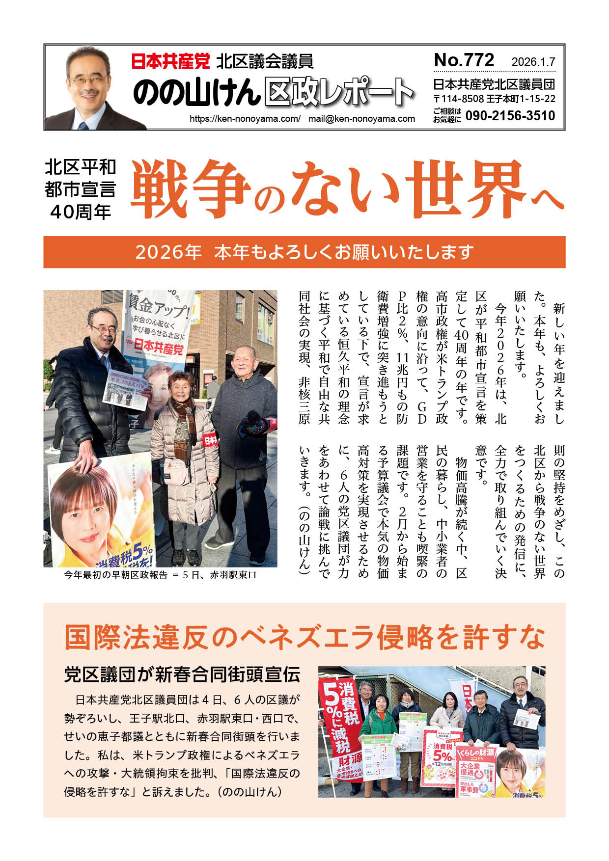 国政法違反のベネズエラ侵略を許すな 党区議団が新春合同街頭宣伝