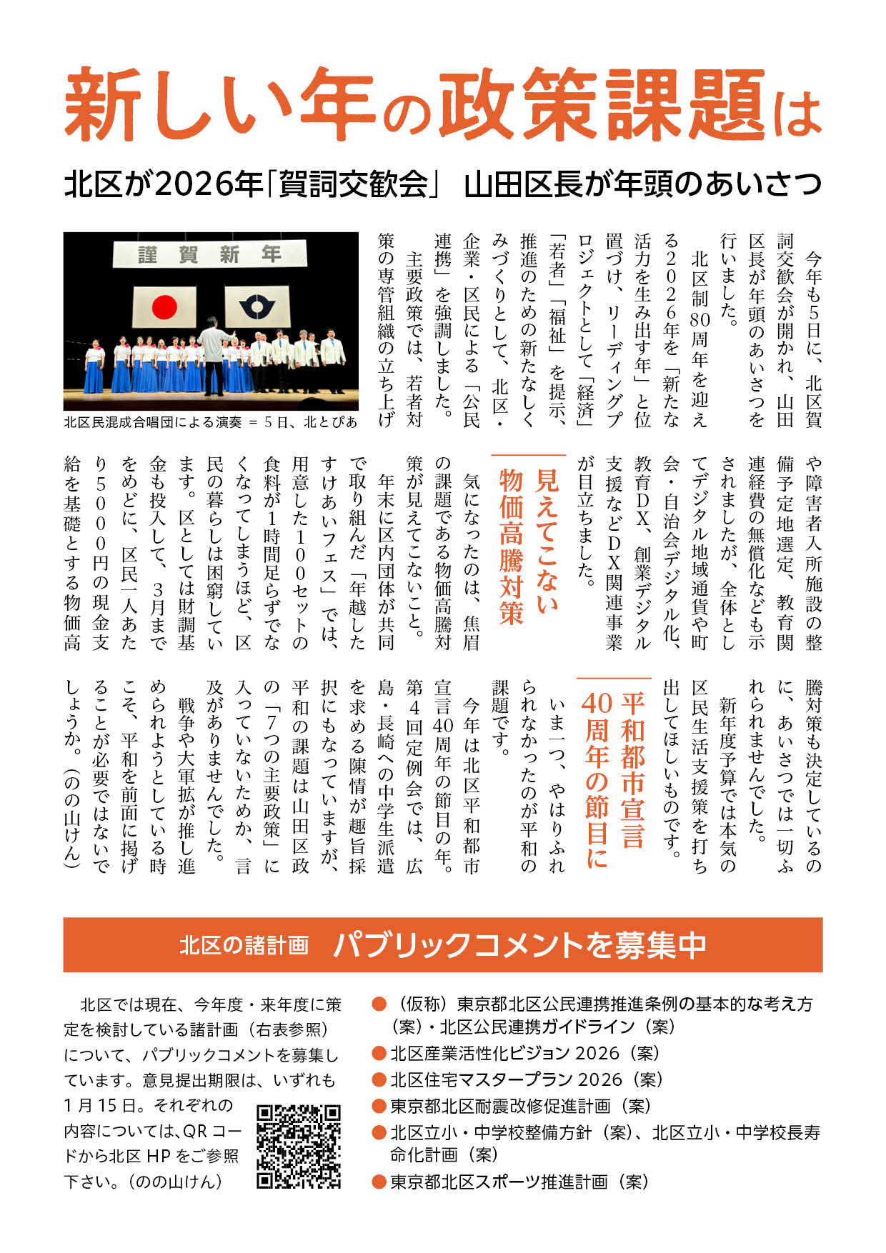 新しい年の政策課題は 北区が2026年「賀詞交歓会」 山田区長が年頭のあいさつ