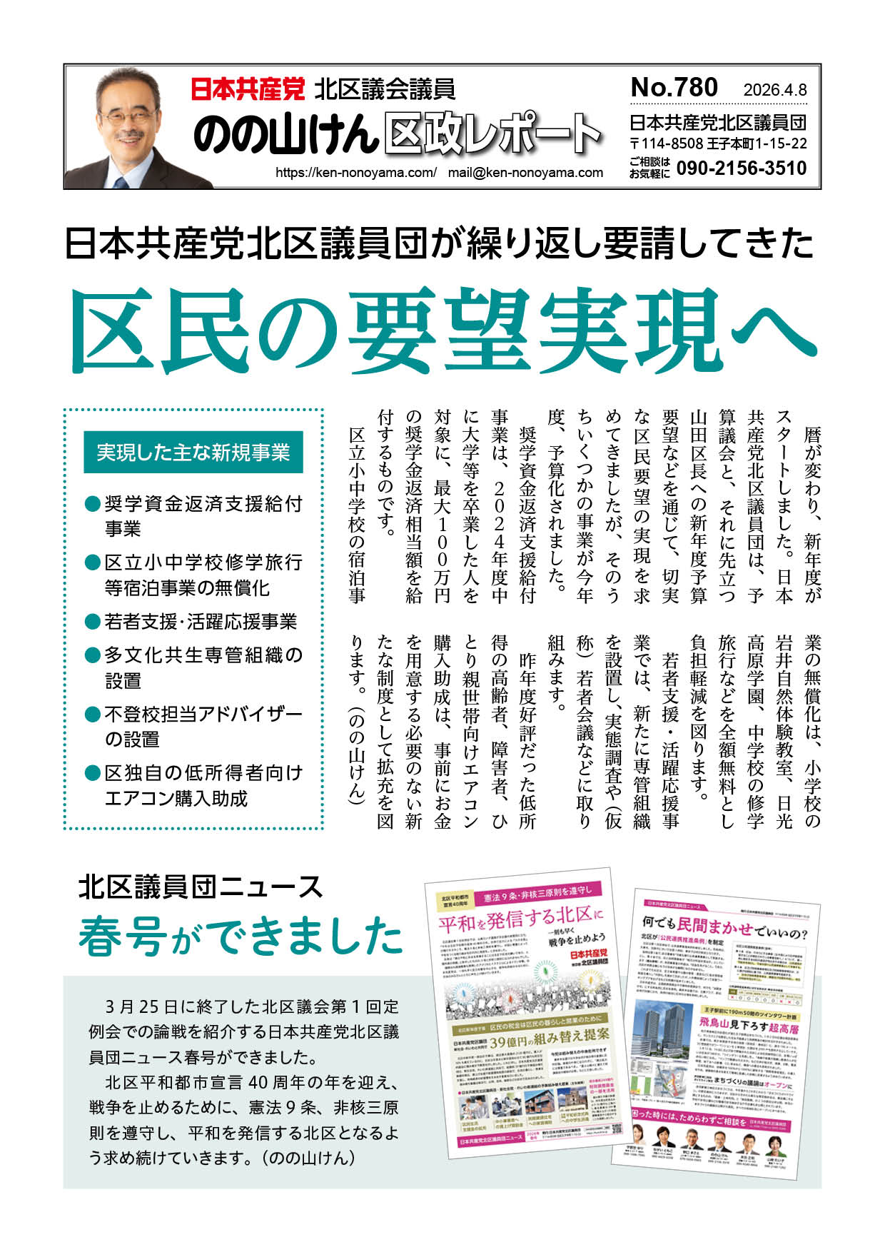 北区議員団ニュース春号ができました