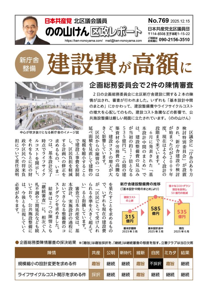 - 新庁舎整備 建設費が高額に 企画総務委員会で2つの陳情審査
