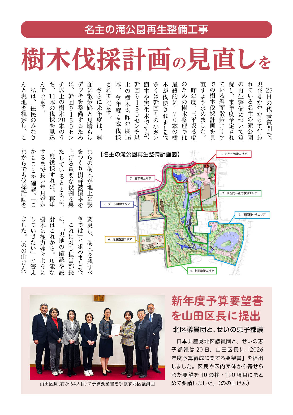 名主の滝公園再生整備工事 樹木伐採計画の見直しを