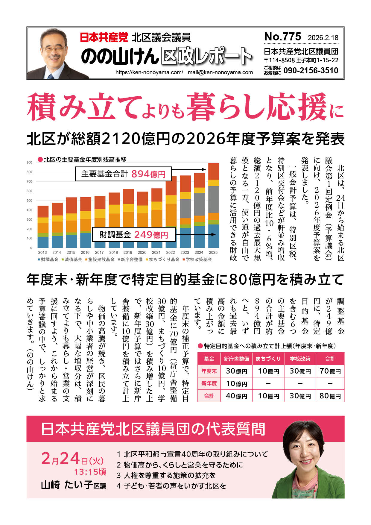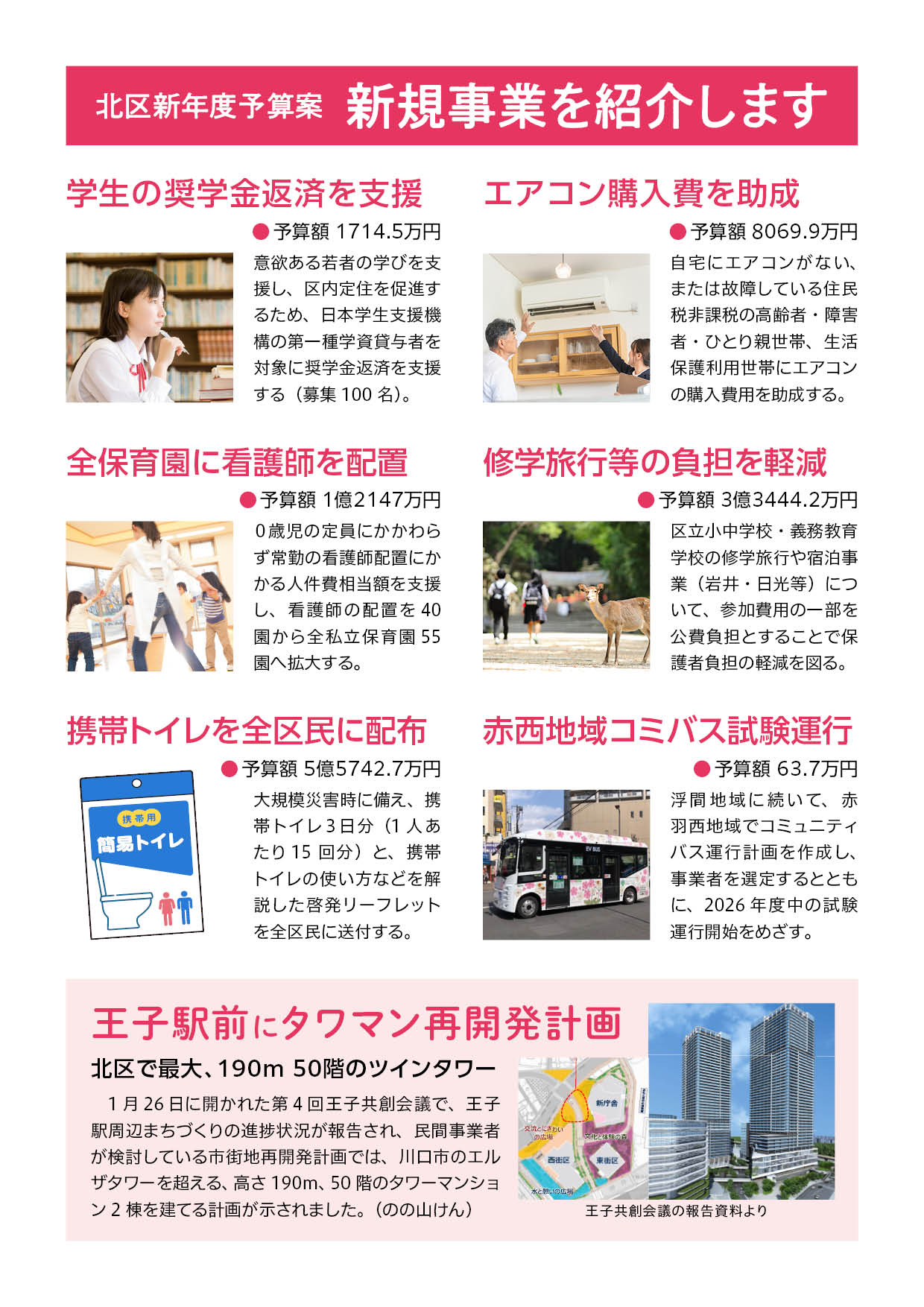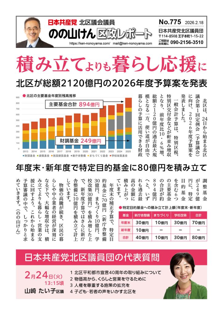積み立てよりも暮らし応援に 北区が総額2120億円の2026年度予算案を発表